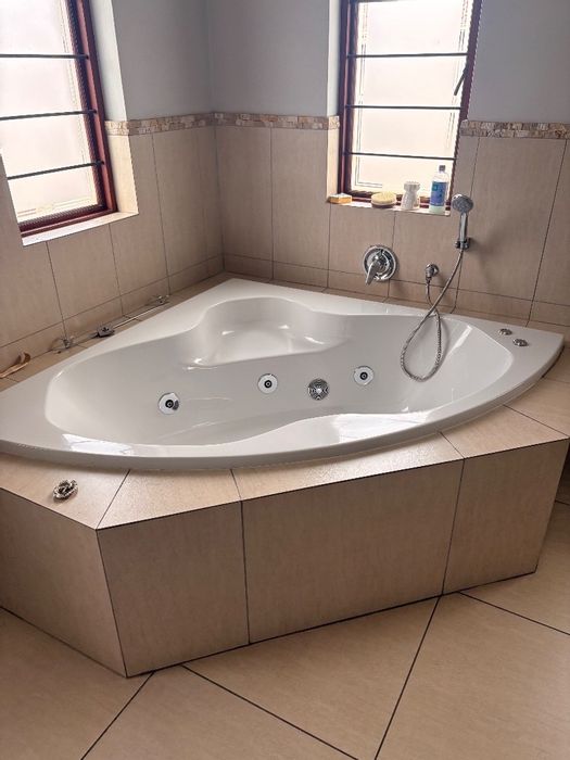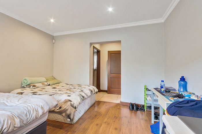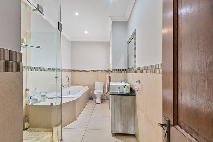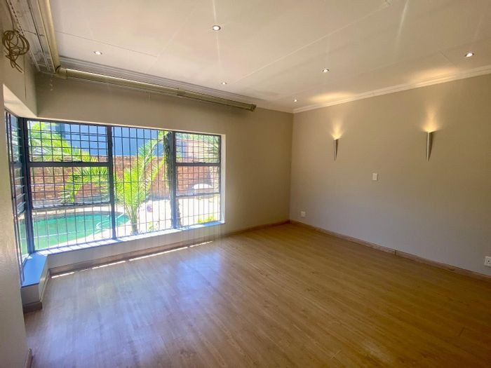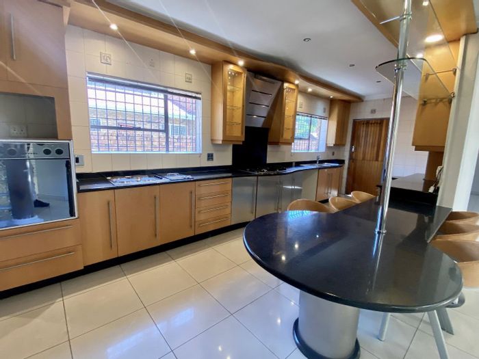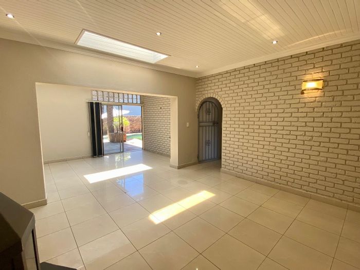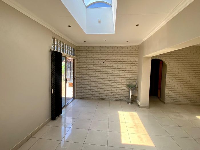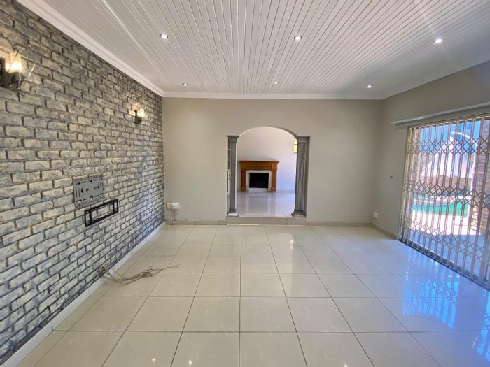 Relaxed family living in Lakefield Estate, Benoni — secure, park-lined streets and easy school access. Private garden and covered patio with open-plan kitchen; four beds, three baths, double garage.