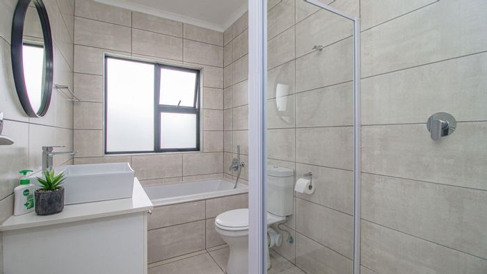 Comfortable family living in Rynfield with a spacious pet-friendly yard, sunny wooden-floored living room, modern kitchen with gas stove and main en-suite with large bathtub.