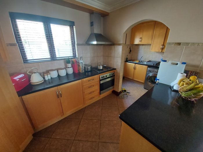 Enjoy sought-after 24-hour estate living with effortless entertaining on a covered patio and built-in braai, landscaped garden, study and staff room — three bedrooms, two baths and double garage.