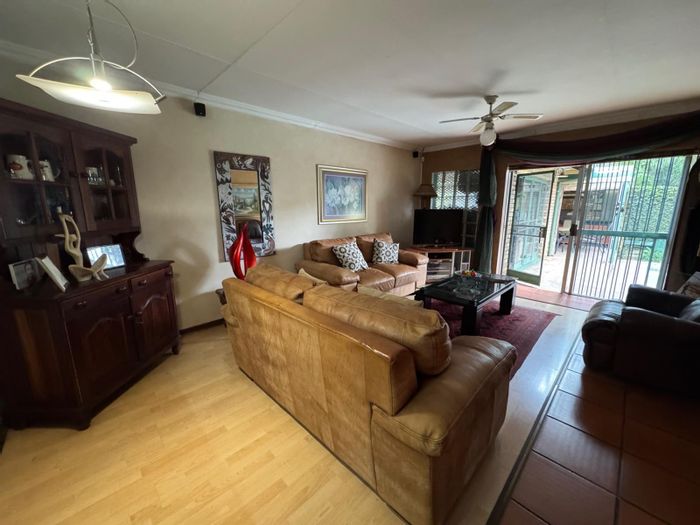 Resort-style living in gated Erasmuskloof with pool and manicured garden; versatile top-level entertainment space with balcony. Four bedrooms, three bathrooms and double garage near Castle Walk.