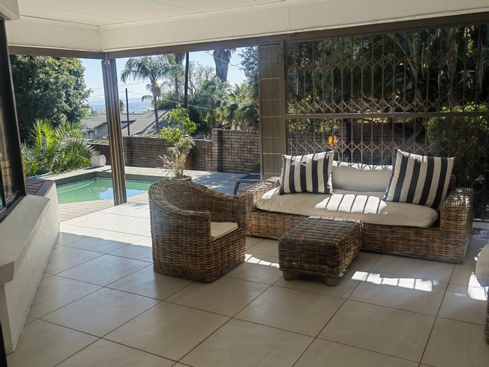 Entertain effortlessly in Roodekrans hills with panoramic views, indoor glass garden and poolside pavilion — furnished double-storey offering four bedrooms, multiple lounges and secure parking.