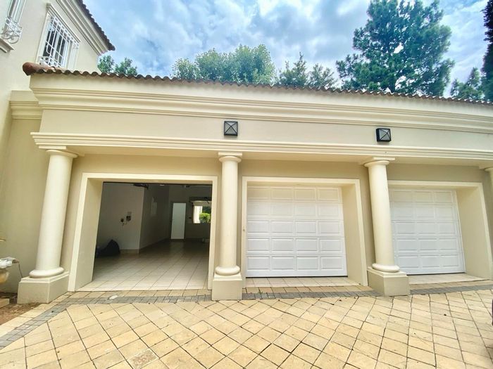 4 bedrooms, 3.5 bathrooms, 856 m² property in Sandhurst, Johannesburg. Unfurnished, double-story with landscaped garden and security features.