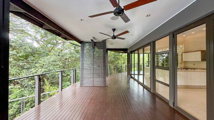 Family-focused outdoor lifestyle in Simbithi Eco Estate with scenic trails and community amenities; large covered braai veranda overlooking the pool. Includes four bedrooms, four bathrooms and double garage.