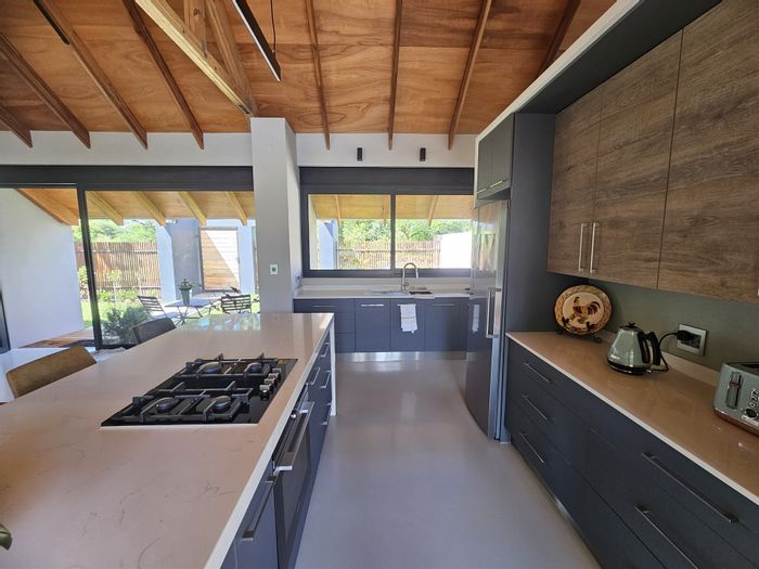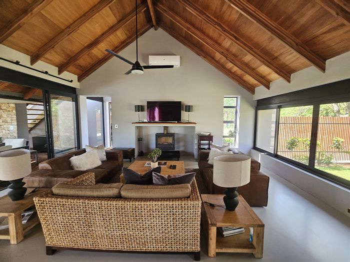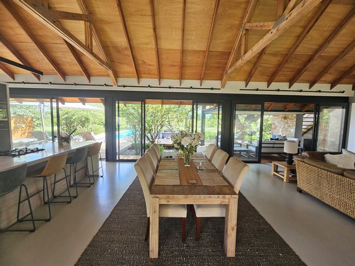 Bush living on Raptors View Wildlife Estate with walking trails, birdlife and sundowner dams. Open-plan living flows to a covered wooden-deck patio and enclosed courtyard; three bedrooms, main en-suite.