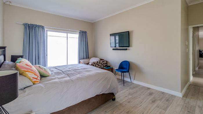 Family-focused coastal living in Sandown, Blaauwberg — walk to playgrounds and Sandown Shopping. Solar-powered, energy-efficient home with braai garden and sandpit; three beds, two baths, double garage.