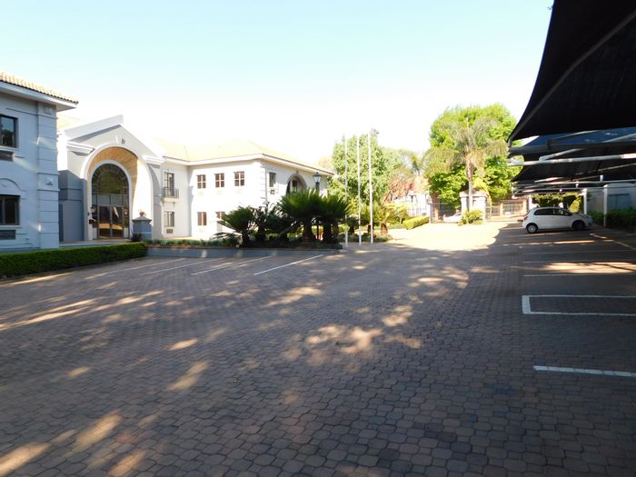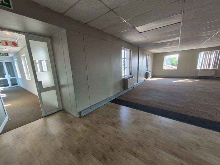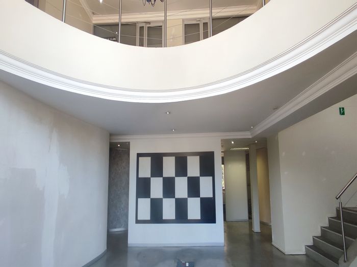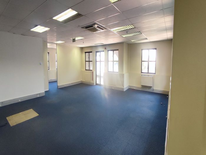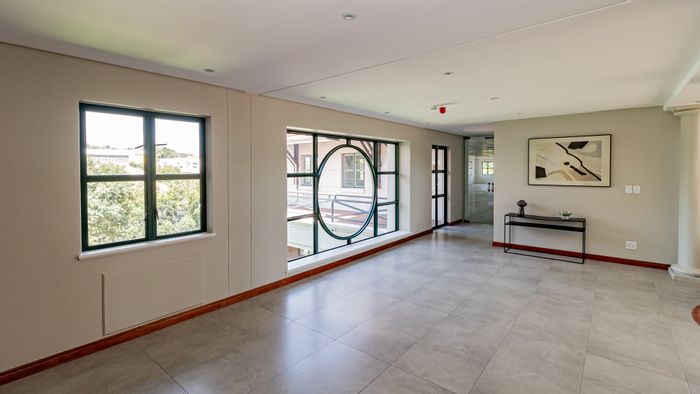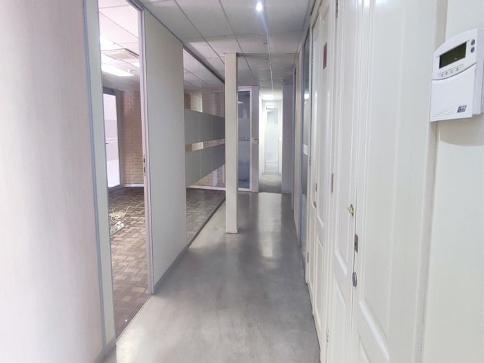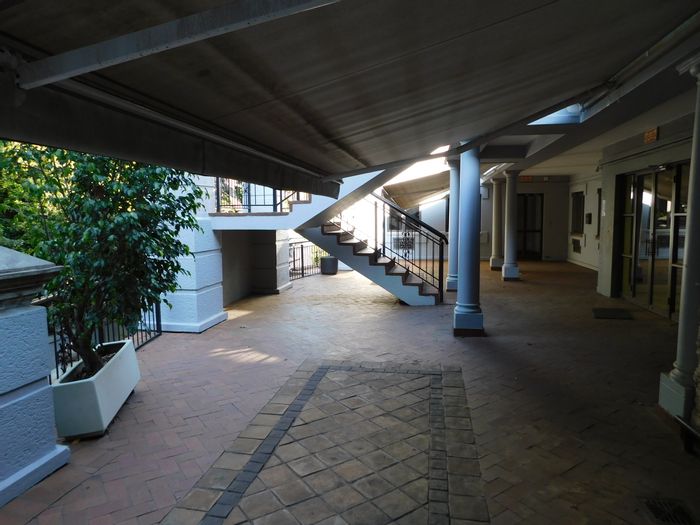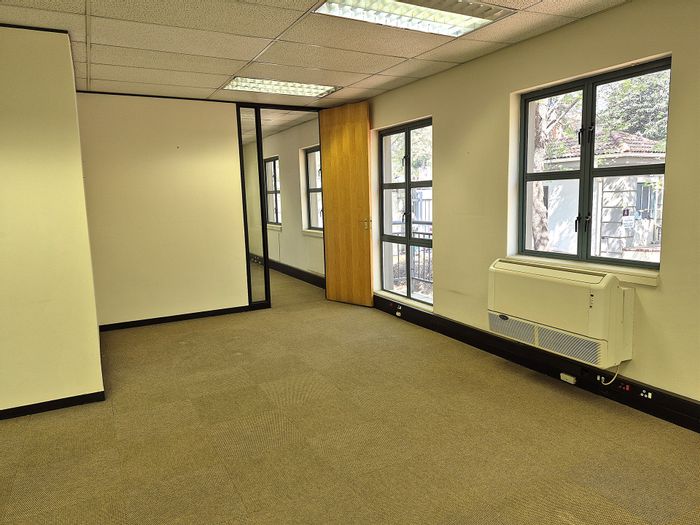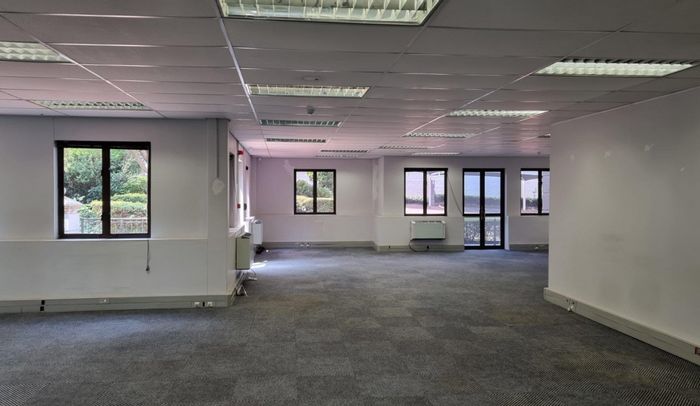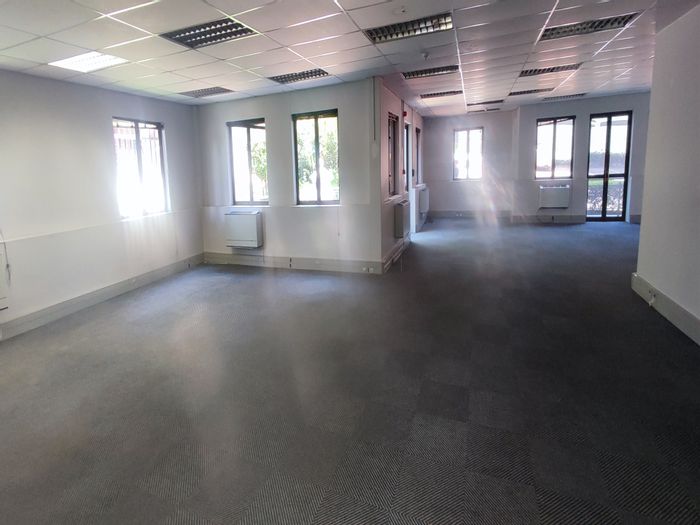 Exclusive first-floor suite in Fountain Grove, Hyde Park — on a two-suites level with large open-plan area, private office and fitted kitchen; secure complex with coffee shop and backup power. 218 m².