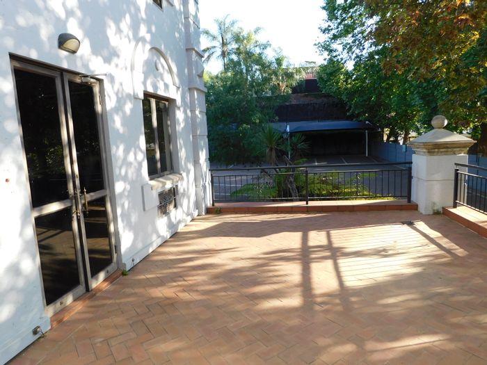 Prestigious freestanding office in Hyde Park, Sandton — secure landscaped grounds with guard house and 24-hour security, minutes from Hyde Park Corner and Jan Smuts Avenue. Balconies, signage rights, 2,191 m².