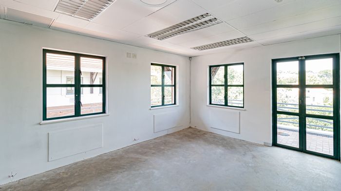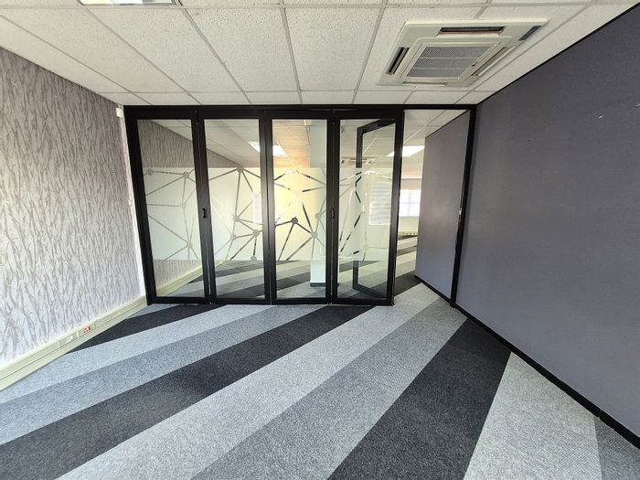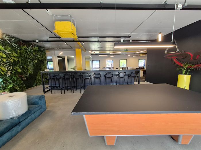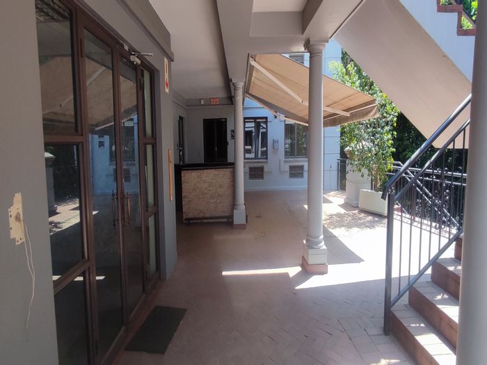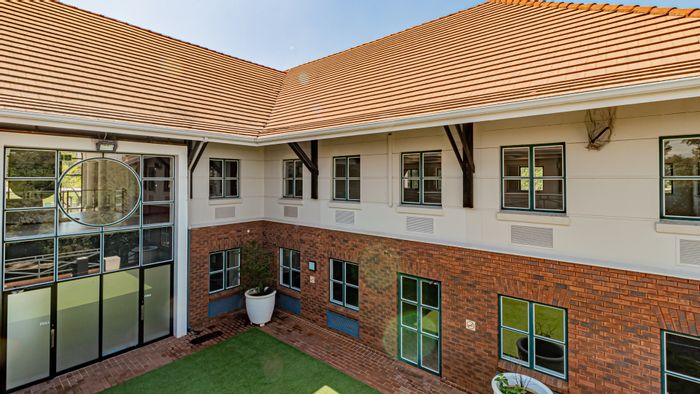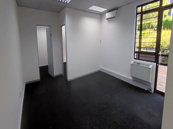 Prestigious Hyde Park office with William Nicol Drive visibility, landscaped grounds and 24/7 solar/battery backup. 350m² suite offers open-plan workspace, terrace, converted-container coffeeshop and ample parking.