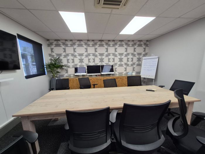 Prime Hyde Park office with a large boardroom opening to a balcony, dedicated server room and reception — secure Fountain Grove park near Sandton, Rosebank and Fourways. 250m².