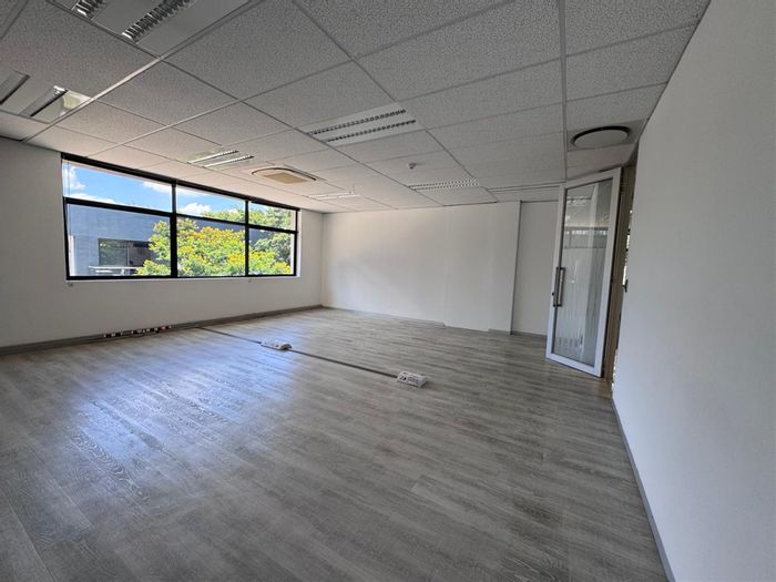 Work in a vibrant professional hub between Sandton CBD and Illovo, opposite St Davids School, centered around a landscaped courtyard with a café; ground-floor suite, two bathrooms.