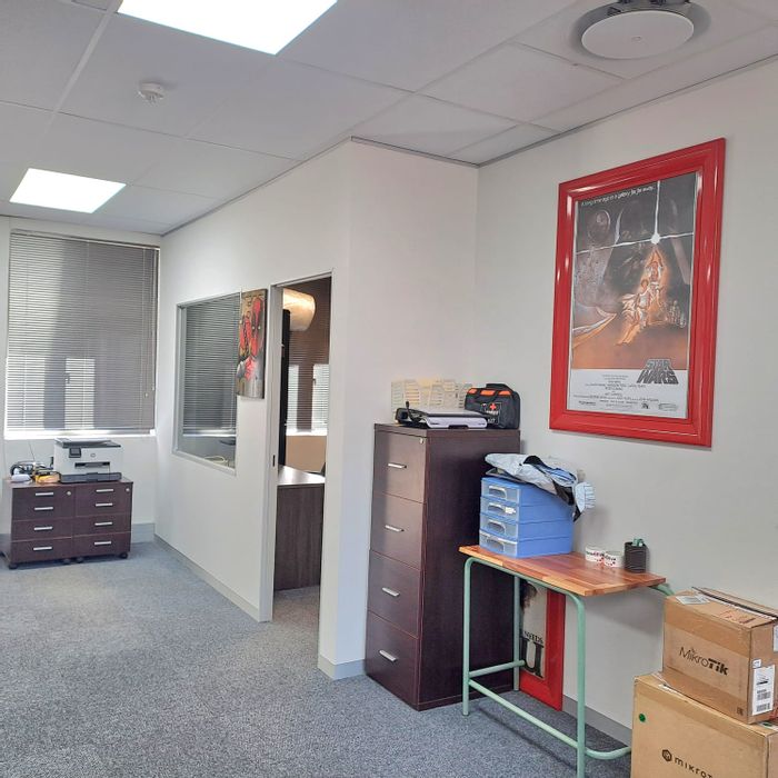 Operate from a ground-floor office in Millennium Business Park, Century City — secure, relaxed park with on-site coffee shop, ample parking and uninterrupted power from solar plus diesel generator.