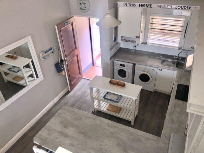 Coastal, relaxed living steps from Diaz Beach and local shops, with covered veranda overlooking pool and garden, braai entertaining space; two bedrooms, two baths and single lock-up garage.