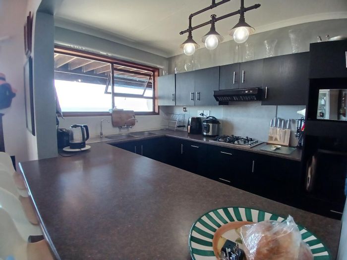 Coastal entertaining and secure complex living with sweeping ocean views and a built-in braai for gatherings; enclosed backyard, four bedrooms, two bathrooms and a lock-up garage.