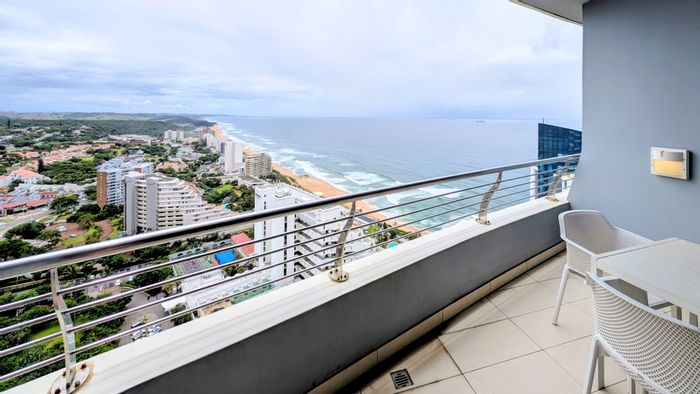 Promenade-side living in Umhlanga Village with easy access to shops and dining; fully furnished modern apartment, open-plan kitchen to patio with sea views, two bedrooms, two bathrooms, pool access.