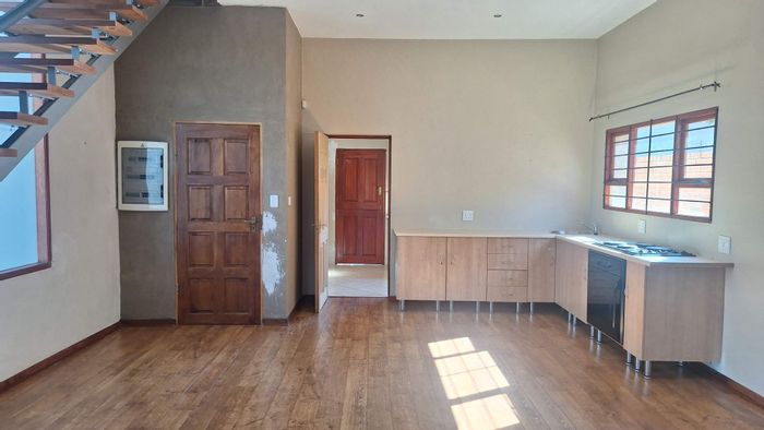 Secure, family-friendly living in Abia Complex with peaceful dam and play area; ground-floor lounge flows to a private garden — two bedrooms, one bath and two covered carports.