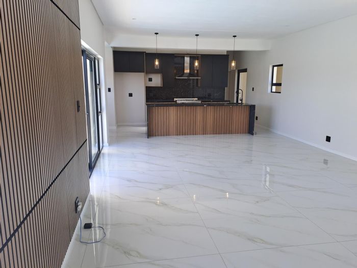 Effortless modern family living in upmarket Sandown, close to schools and shopping — open-plan design with designer kitchen and pool-ready plans. Four bedrooms, 3.5 baths, double garage.