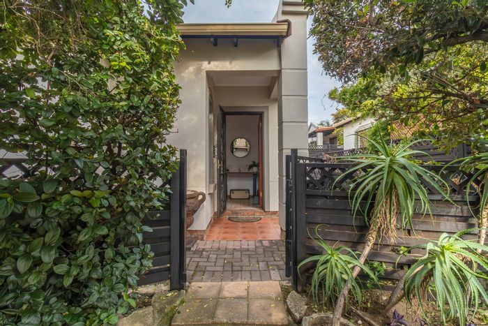 Enjoy peaceful, secure Paulshof living with a private tree-lined courtyard and rustic kitchen-living area; spacious bedroom with en-suite, includes water and Wi-Fi, plus covered parking.