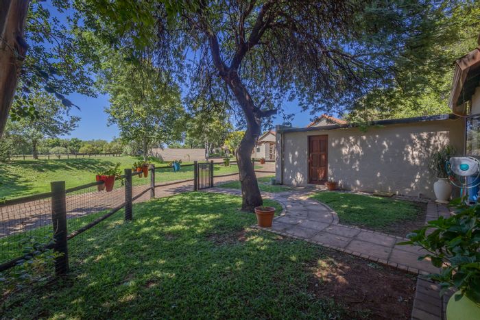 Entertainer's retreat in The Coves, overlooking pivot fields and the Magalies Mountains, with double-volume living, boma, built-in gas braai and pool — four bedrooms, 2.5 baths, double garage.