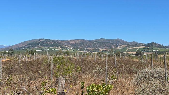 Escape to a vast rural retreat with sweeping mountain and valley views near Paarl and Wellington; 14-hectare blank canvas with old grapevines ready for transformation.