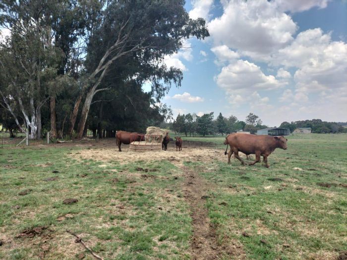 Enjoy productive rural living on 1,225ha of high‑rainfall farmland with a permanent spruit, dams and boreholes, extensive livestock infrastructure, Bonsmara herd and farm equipment.