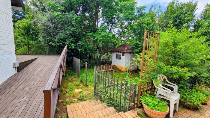 Garden-focused family lifestyle with private entrance to an adjoining bird park, pool and koi pond, close to Bryanston and Gallo Manor — four bedrooms, three bathrooms, double garage.