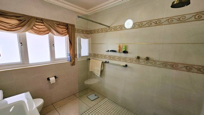 Entertainer's retreat in Devonshire enclosure with a high-walled, private garden and enclosed braai patio; solar-powered guest-house layout includes seven bedrooms, six bathrooms and five covered parking spaces.