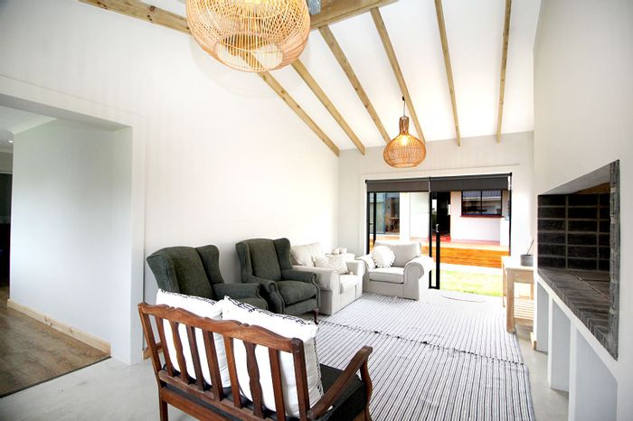 Relaxed family living in Kraaibosch Country Estate on the Garden Route, steps from trails and park. Undercover patio with built-in braai overlooks a peaceful greenbelt; three beds, two baths.