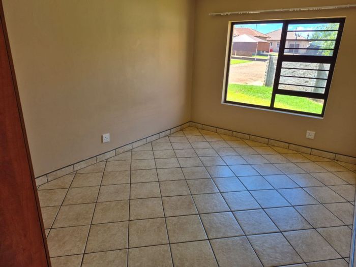 Secure estate living with peace of mind in a well-maintained gated community — open-plan lounge with air-conditioning, small yard, three bedrooms, two bathrooms and single garage.
