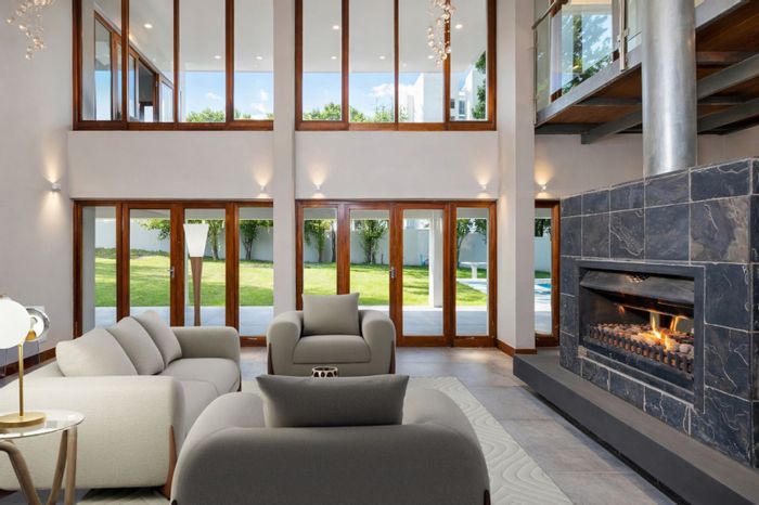 Relaxed family living and effortless entertaining in Sandown, Sandton's leafy enclave, with a covered patio overlooking a sparkling pool, four bedrooms, four bathrooms and double garage.