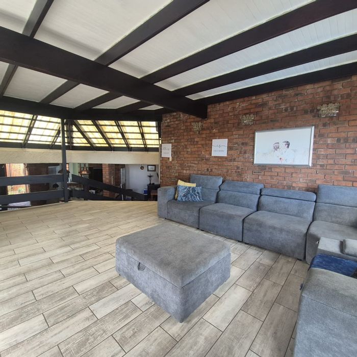 Effortless family living opposite Ruimsig Country Club, offering seamless indoor–outdoor entertaining with pool and lapa, renovated finishes, private garden and balcony views — five bedrooms, double garage.