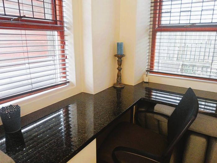 Enjoy villa-style ground-floor living with private entrance and a quiet, tree-lined setting — walking distance to Kloof Street cafés and restaurants, private patio, two en-suite bedrooms, secure off-street parking.