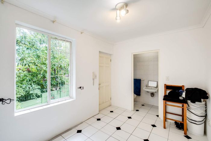 Classic Cape Town living near UCT, with preserved Oregon pine floors and marble fireplaces. Private courtyard hosts a separate en‑suite studio — four bedrooms and off‑street parking.