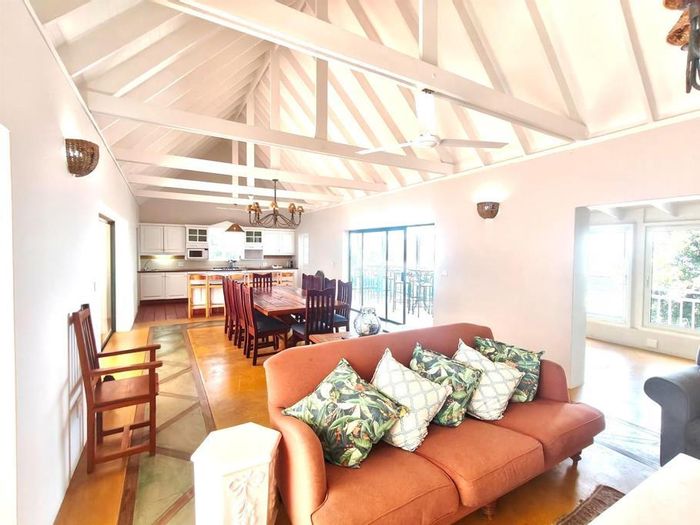 Seaside entertaining retreat in Prince's Grant Golf Estate with sweeping ocean views, poolside bar, astro-turfed gardens, open-plan living and seven bedrooms, four baths, single garage.