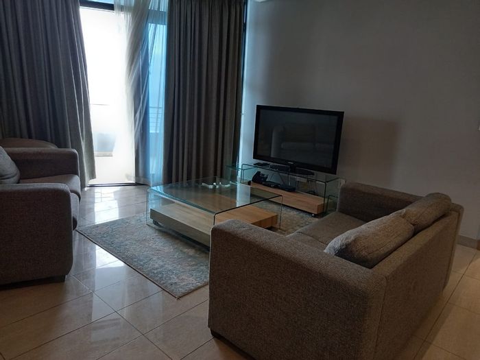 Coastal living steps from Umhlanga Beach cafés, with a sea-view balcony, open-plan lounge and fully furnished interiors; three bedrooms, two bathrooms and double automated garage.