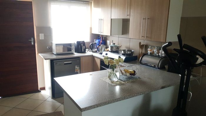 Pet-friendly ground-floor living in Ferndale with private patio and exclusive-use garden, Caesarstone kitchen, pool and braai on-site — two bedrooms, one bathroom, two covered bays.