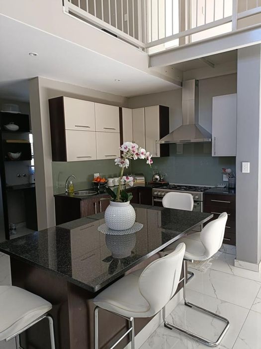 Lock-up-and-go living in a sought-after Pretoria East secure estate, with double-volume entrance, open-plan kitchen and stack doors to an entertainment patio with built-in braai. 3 beds, 2 baths, double garage.