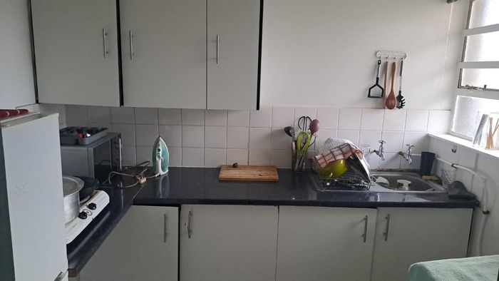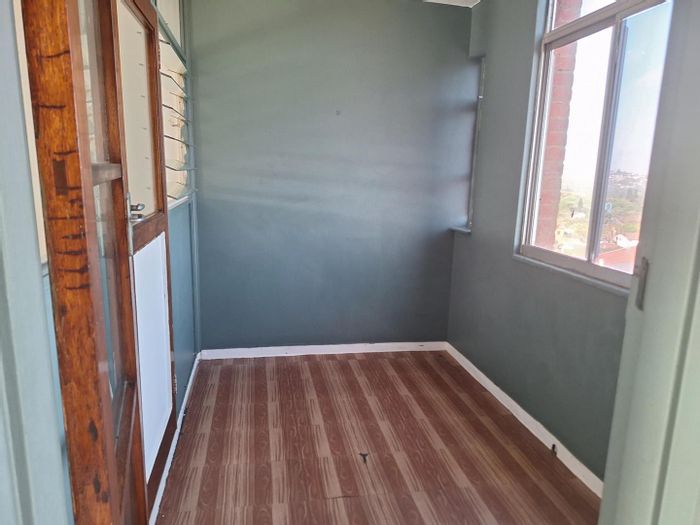 Sunlit bachelor apartment ideal for convenient city living, overlooking DUT with elevated views, kitchenette with granite counters, neat bathroom, prepaid utilities, secure building with lifts.