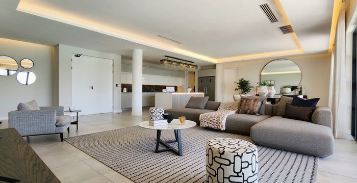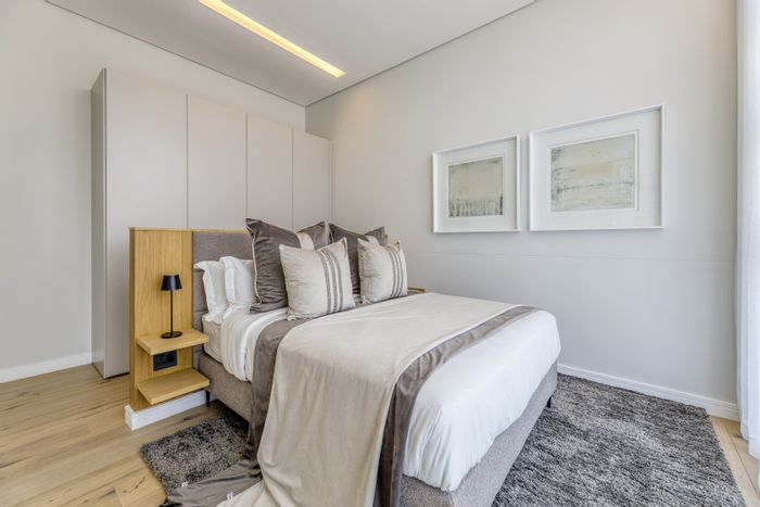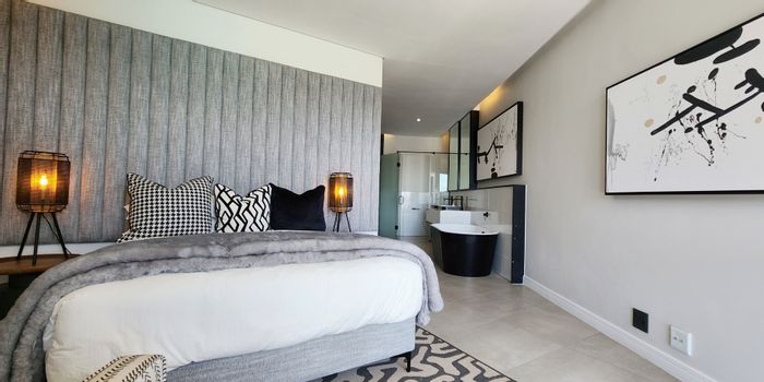 Entertain in elevated urban living with panoramic views from a massive balcony in Ellipse, Kepler Tower — steps from Mall of Africa and Waterfall City; two beds, 2.5 baths, double parking.