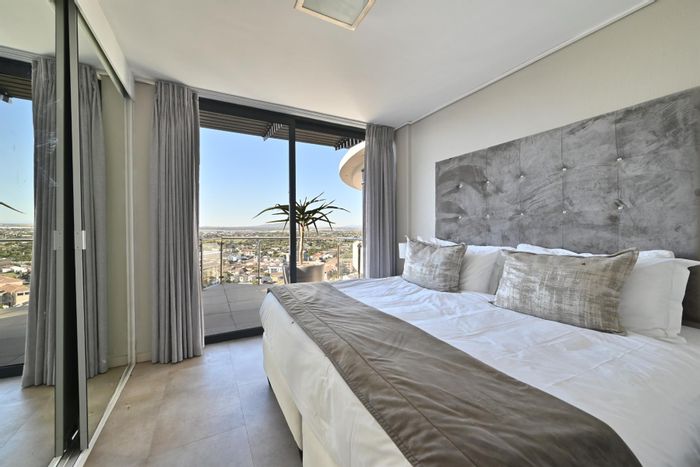 Sundowner coastal living on Blouberg beachfront with cafés and beaches nearby; top-floor penthouse offers a private 360° viewing terrace, two balconies and three en-suite bedrooms.
