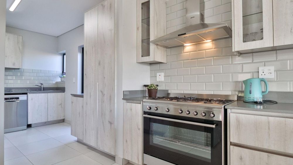 Step inside to discover a spacious living room with an open-plan design that seamlessly connects to a gourmet kitchen. The kitchen is equipped with ample cupboards, a gas hob, and an electric oven, ensuring a delightful cooking experience. A separate scullery provides convenience and leads out to a small courtyard, ideal for hanging laundry and housing water tanks along with an inverter solar geyser.