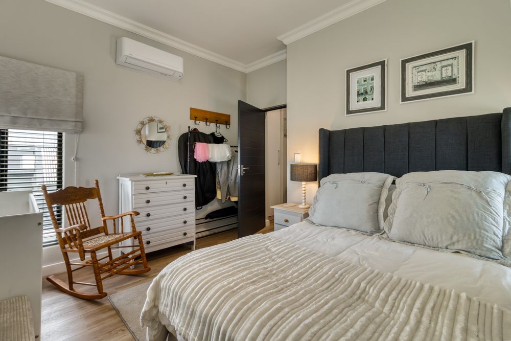 Welcome to your dream home in a serene security estate just outside Stellenbosch! This remarkable double-story residence boasts impressive architectural design, making it one of the largest homes in the community. With three spacious bedrooms, including a luxurious main suite that features a private balcony overlooking the dam and stunning mountain views, this property offers both comfort and elegance.