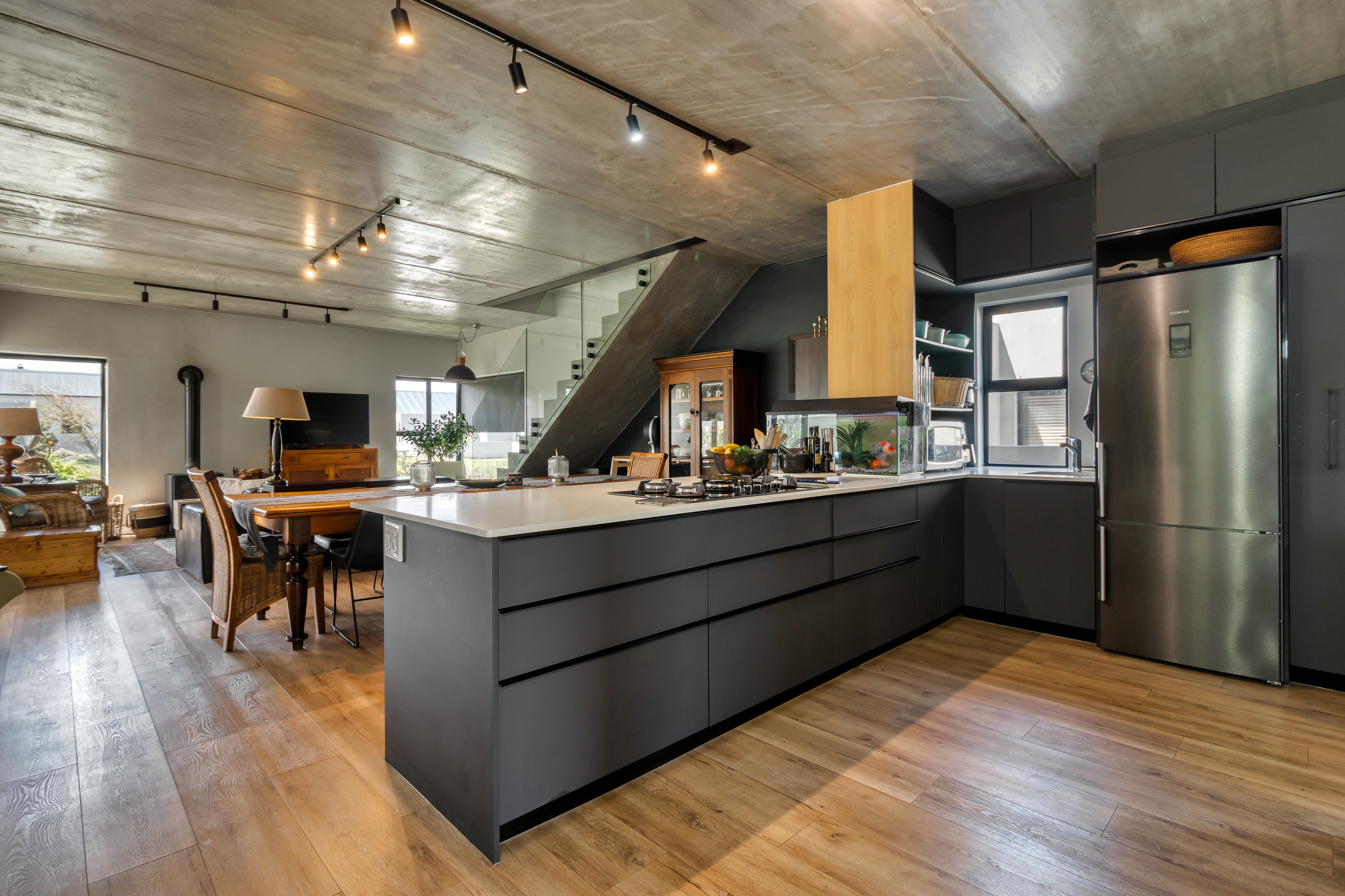 As you step inside, you'll be greeted by a generous open-plan kitchen, lounge, and dining area, perfect for entertaining. The cosy fireplace adds warmth and charm, creating an inviting atmosphere for family gatherings. The modern kitchen features a large gas stove, electric oven, and ample storage, making it a culinary haven.