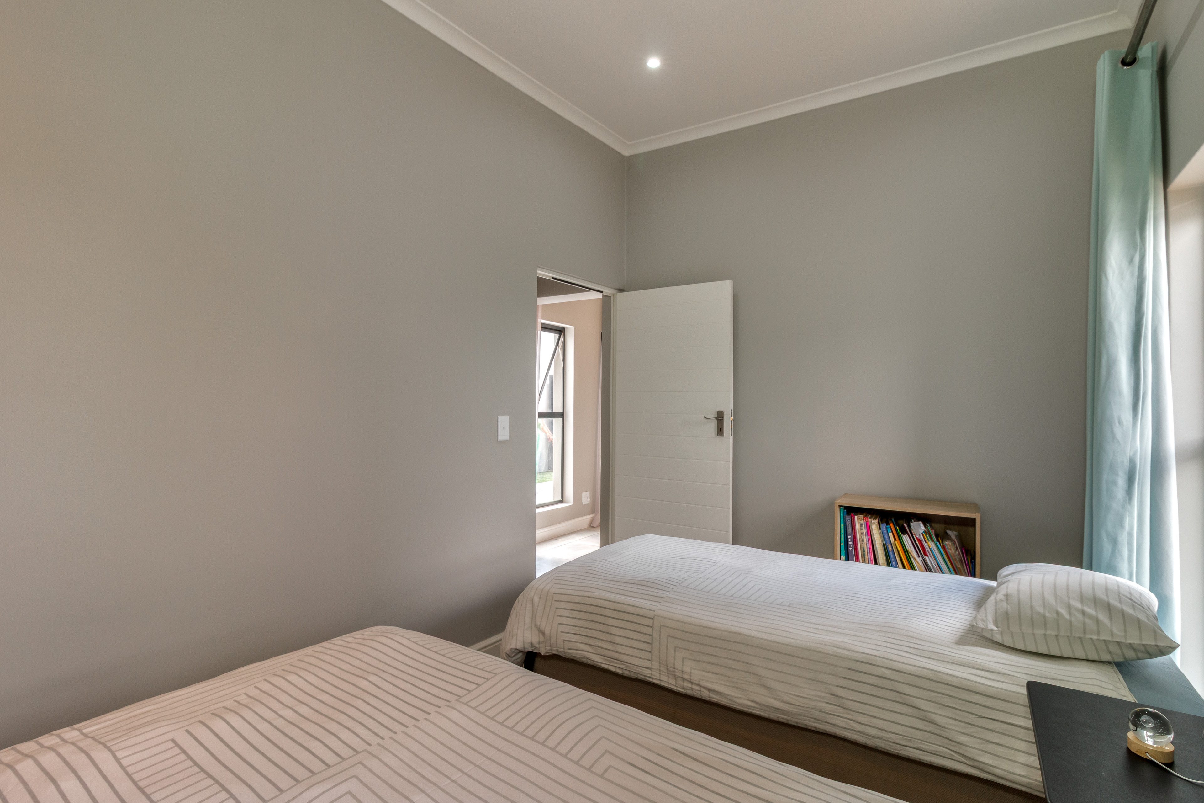 The living area boasts exposed trusses and large sliding doors that open to the outdoor area, creating seamless flow and natural light. The uniquely designed kitchen offers ample storage, a gas stove, and premium finishes throughout. This home also includes a solar geyser and upgraded, non-standard finishes that set it apart.
