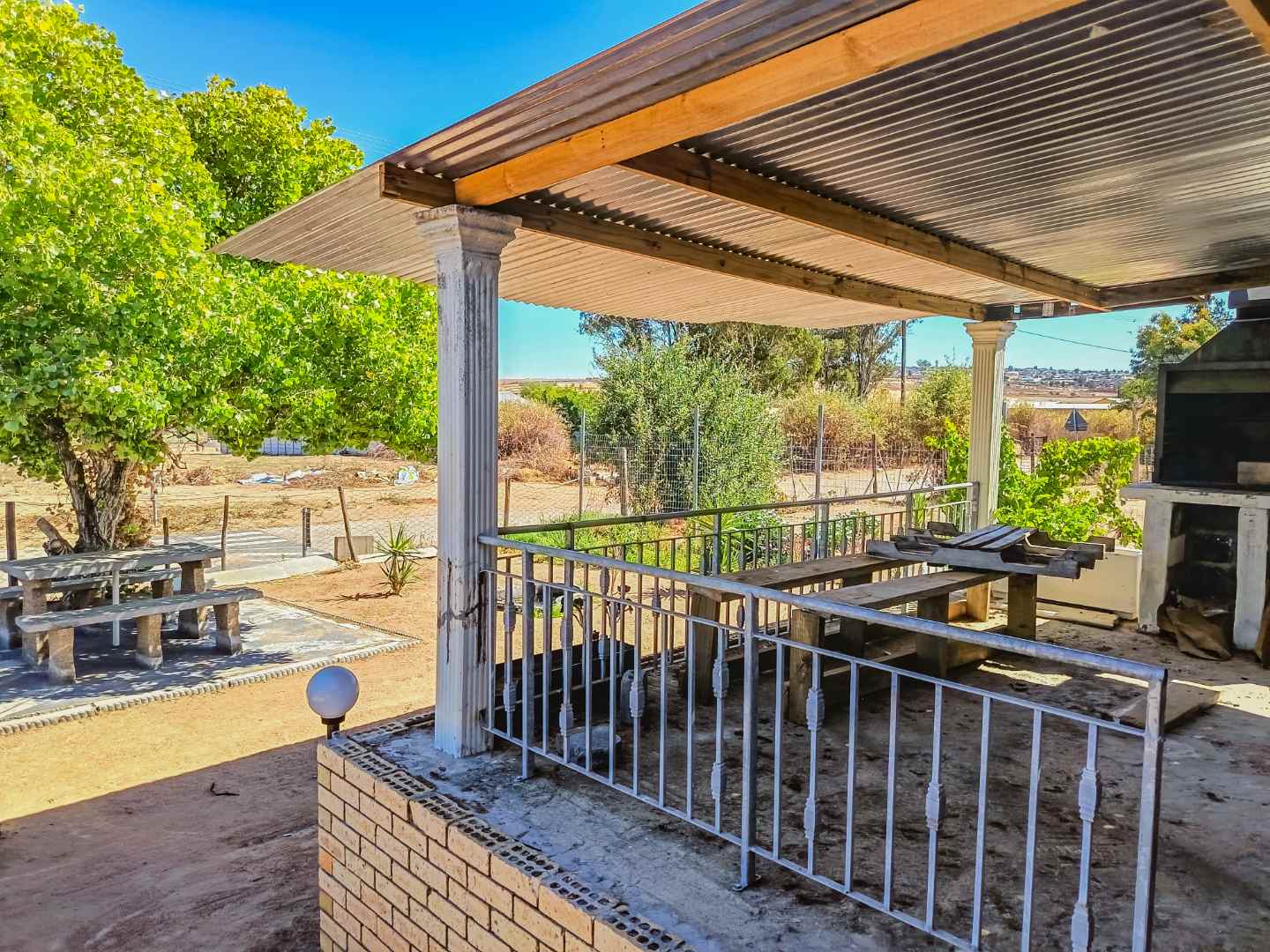 The outside area presents a comfortable stoep with a built-in braai.