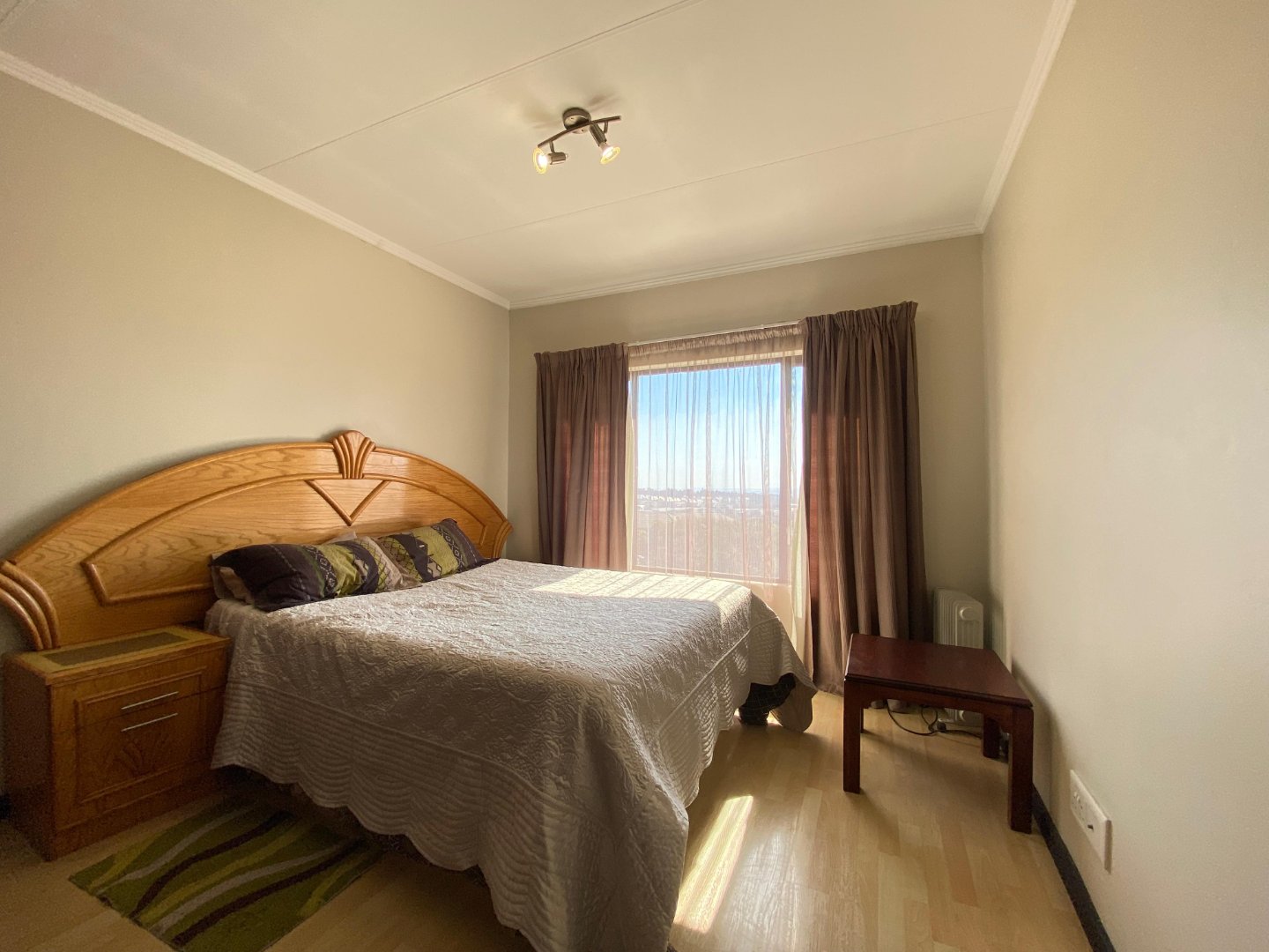 This modern 2-bedroom, 2-bathroom townhouse offers comfortable and convenient living in a pet-friendly complex. The main bedroom includes an en-suite bathroom, while a guest toilet adds extra convenience. The home features a tiled open-plan layout with a lounge, TV room, and family room, creating versatile living spaces for relaxation and entertainment. The kitchen is fitted with granite countertops, a breakfast nook, and has prepaid electricity for easy budgeting. Outdoors, residents can enjoy a communal pool and braai area, with two covered carports and additional parking available. This 80 m2 unit is perfect for small families, couples, or first-time buyers looking for secure and easy living.