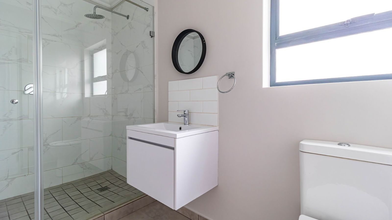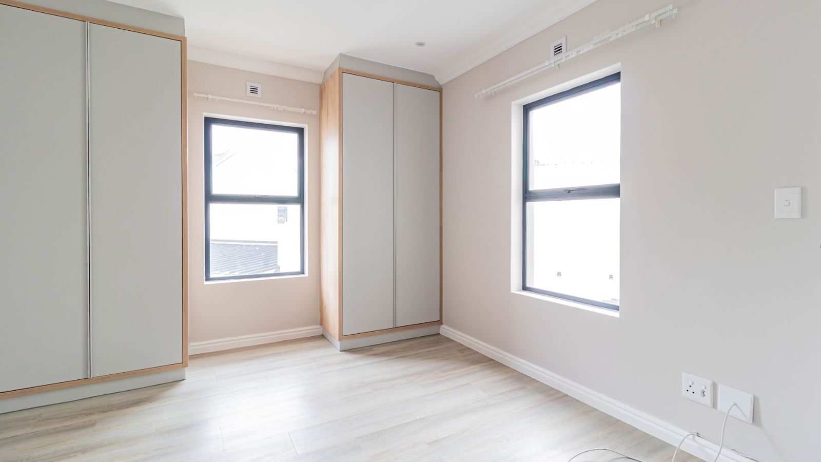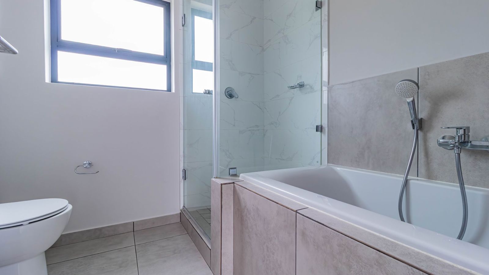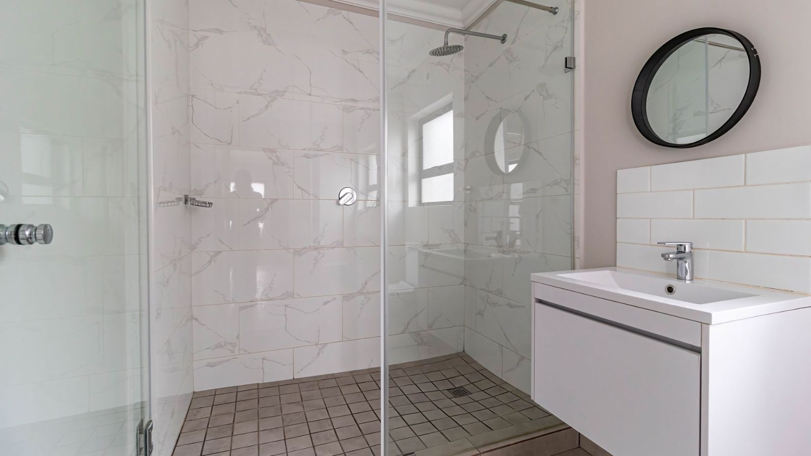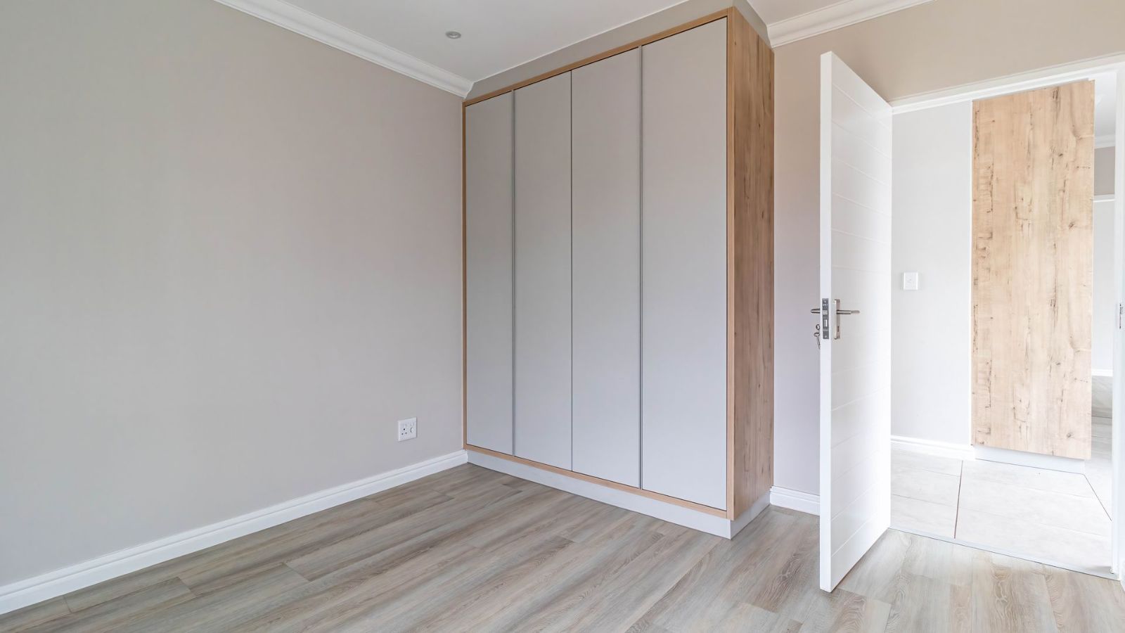 All three bedrooms come with built-in cupboards, while the main bedroom offers an elegant en-suite bathroom with a walk-in shower. The second bathroom is tastefully designed with both a bath and a shower.