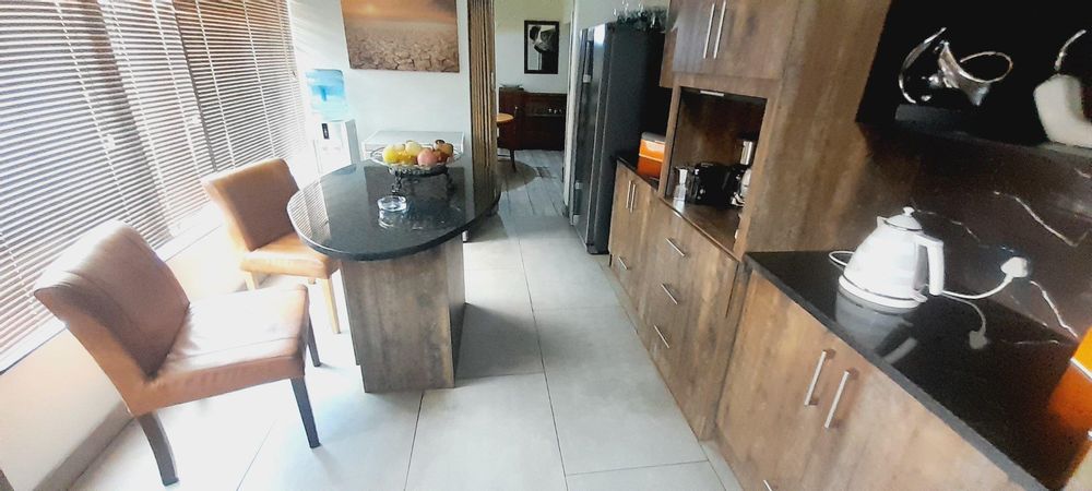 Step into a world of luxury, comfort, and smart investment with this exceptional modern family home in the highly sought-after Adamayview, Klerksdorp. The main house boasts three spacious bedrooms with built-in cupboards, two modern bathrooms including a luxurious en-suite, and a dedicated study for remote work or personal projects. Entertaining is effortless with two expansive living areas, modern kitchen featuring a gas hob, electric oven, double sink, and a stylish coffee station, plus a built-in bar with granite countertops that flows seamlessly into the dining and braai areas.