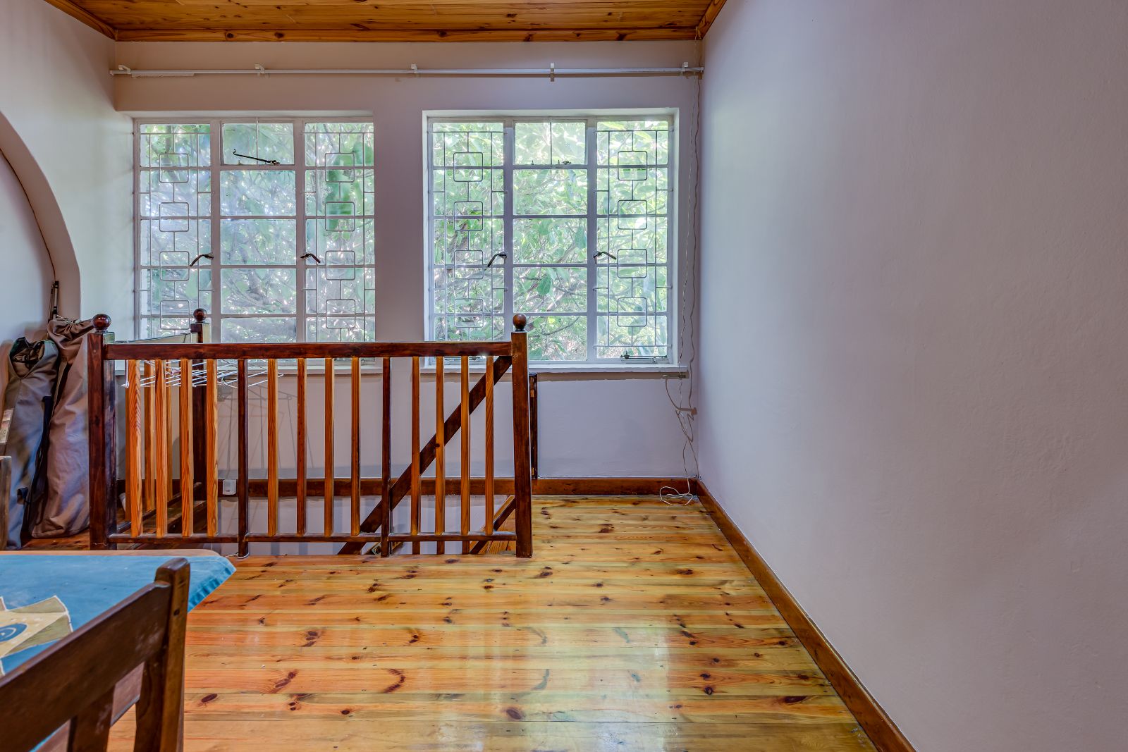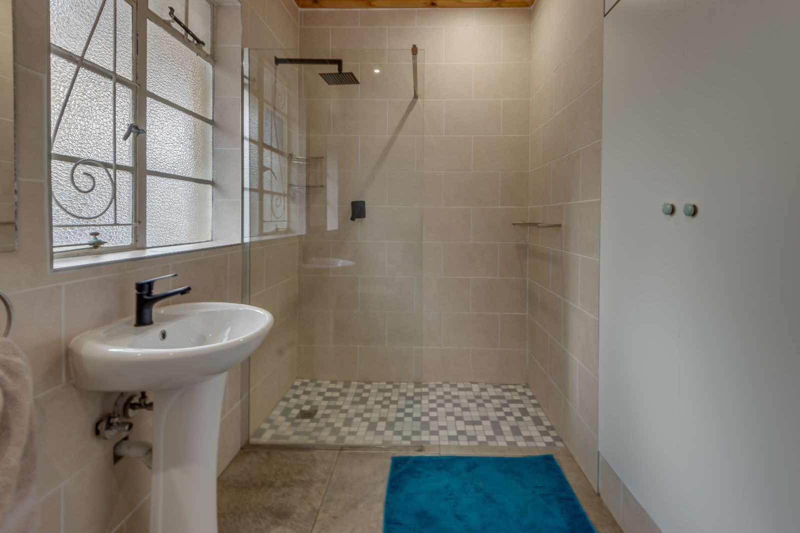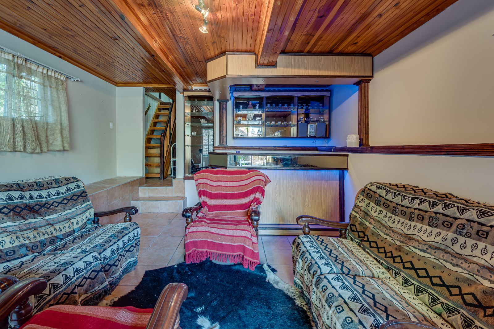 Downstairs, you’ll find a second lounge or entertainment room complete with a built-in bar. Sliding doors open onto a covered patio that leads directly to the braai area, making this an ideal indoor-outdoor entertainment zone. A small study nook is neatly tucked away under the stairs.