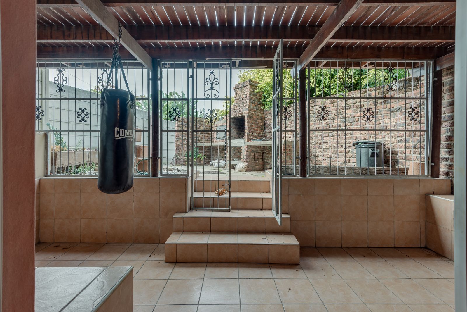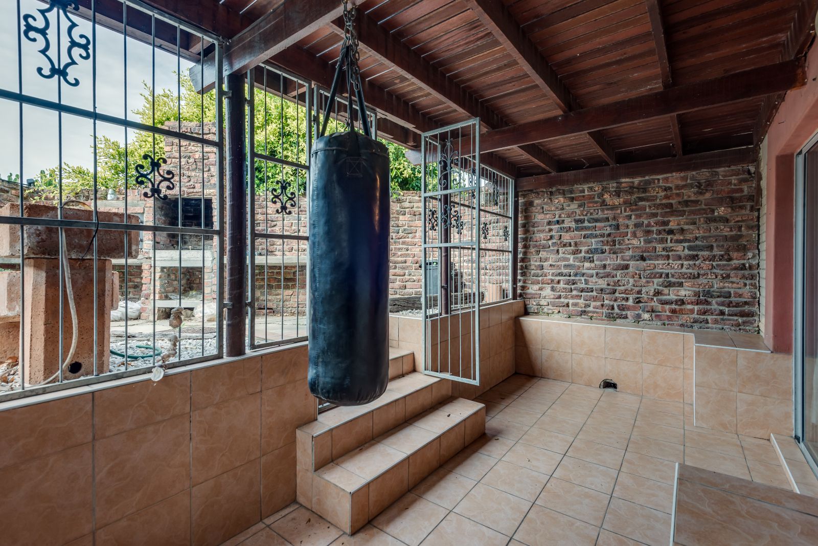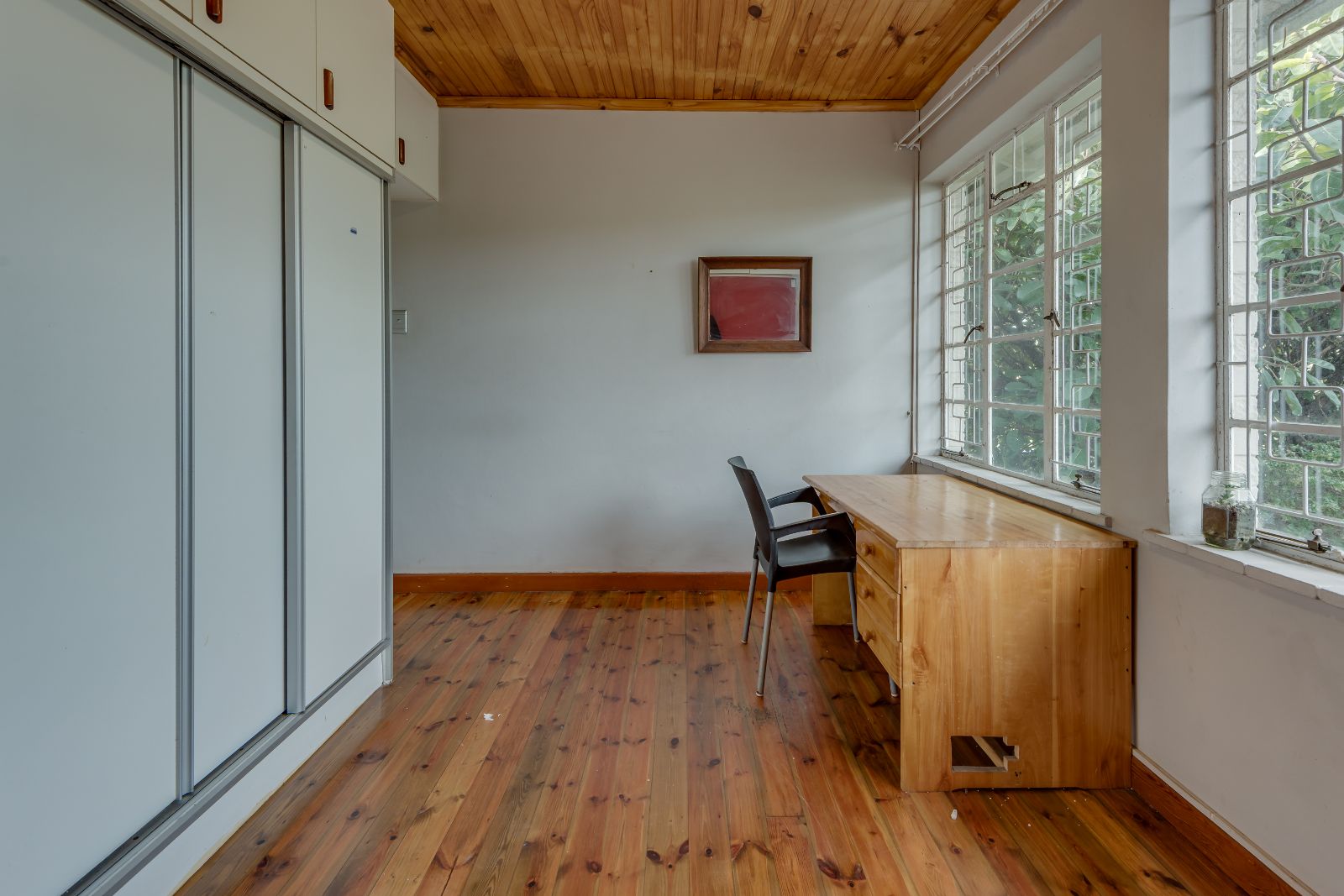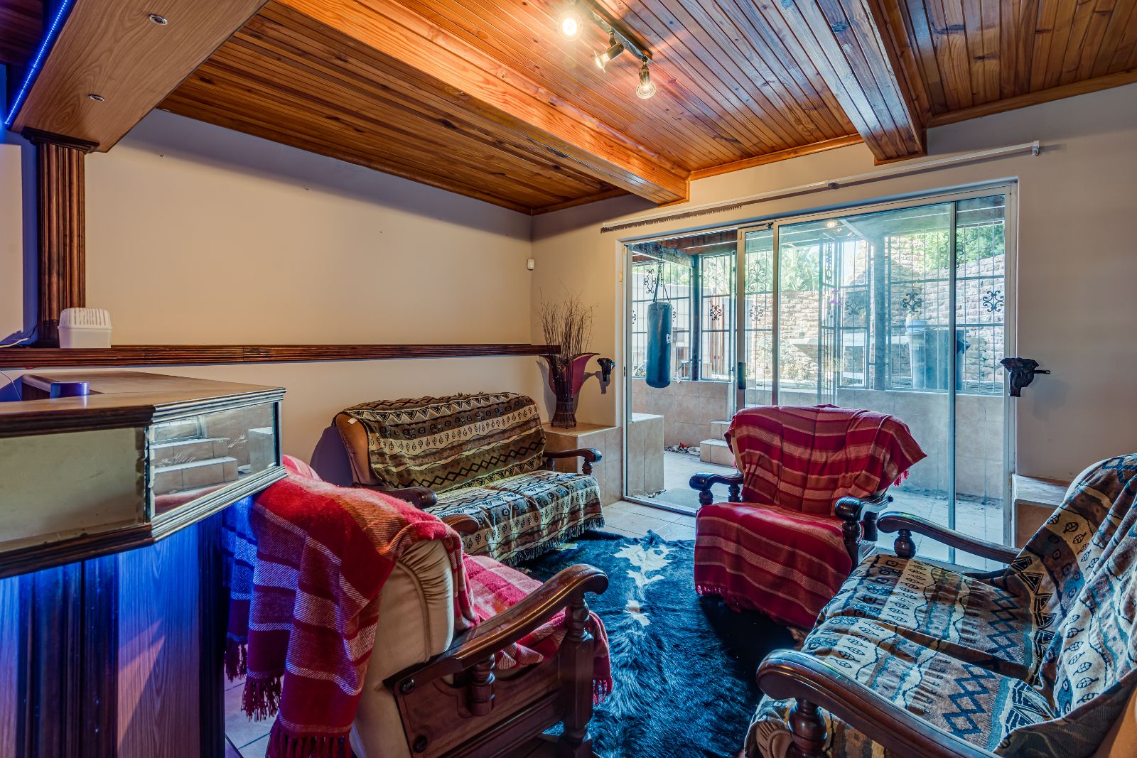 Downstairs, you’ll find a second lounge or entertainment room complete with a built-in bar. Sliding doors open onto a covered patio that leads directly to the braai area, making this an ideal indoor-outdoor entertainment zone. A small study nook is neatly tucked away under the stairs.