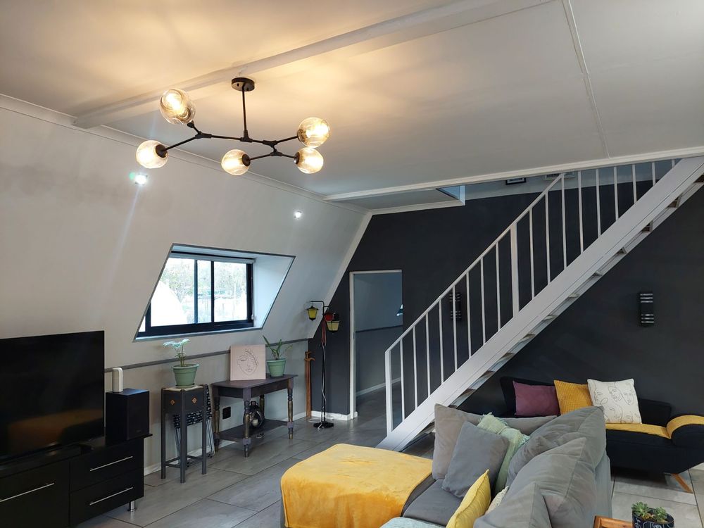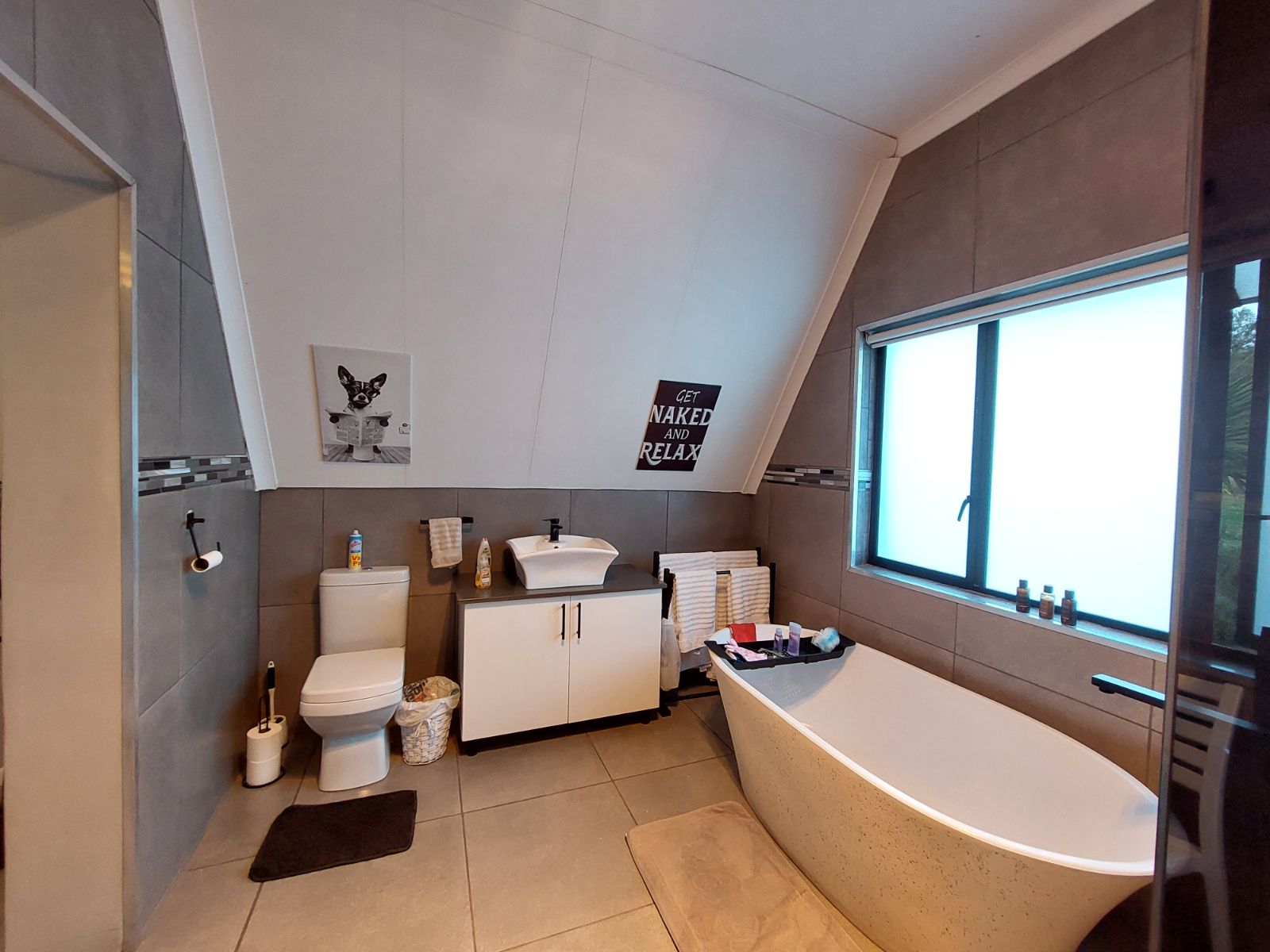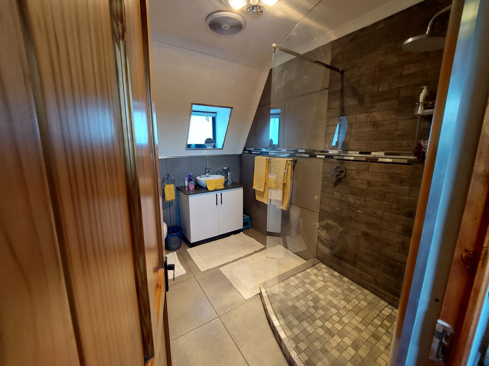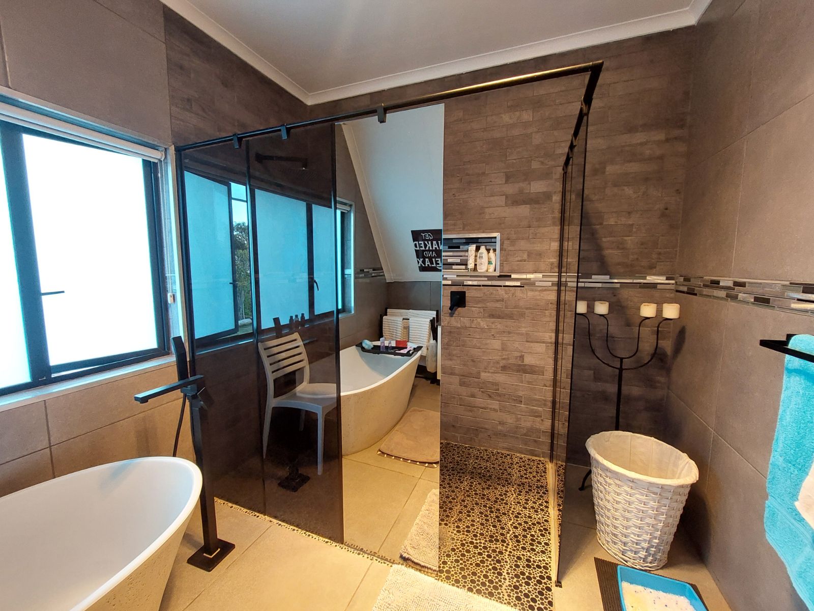 A luxurious ground-floor main bedroom, complete with on-suite bathroom, walk-in closet, and a stoep with breath taking views of the majestic Spandaukop at sunset.